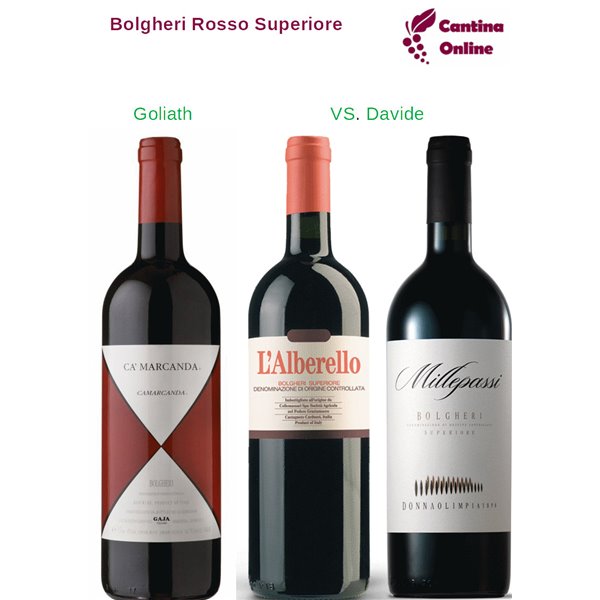 La grande sfida: Il Grande blasone "Bolgheri Rosso Superiore Ca' Marcanda" Ca' Marcanda Gaja contro "Bolgheri Rosso Superiore Millepassi" Donnaolimpia e "Bolgheri Rosso Superiore L’Alberello" Grattamaco